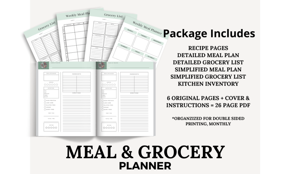 These printable weekly meal planners, grocery lists and recipe card will get you started! Begin eating more mindfully, cooking more often, norishing yourself and your family and saving both food waste and money!