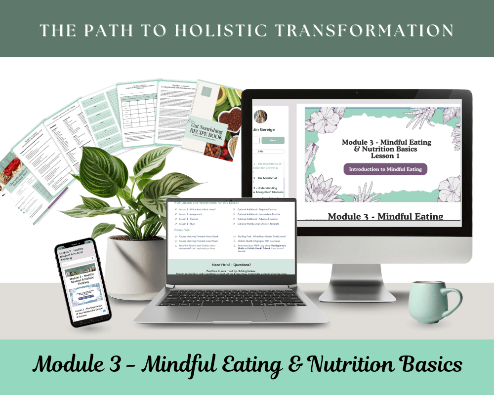 Each month, a new module is released, each one focused on a different pillar of holistic health — mindset, nourishment, movement, emotional well‑being, lifestyle habits, and more. Every module is completely self‑contained, individually purchasable, and designed to be taken in any order.